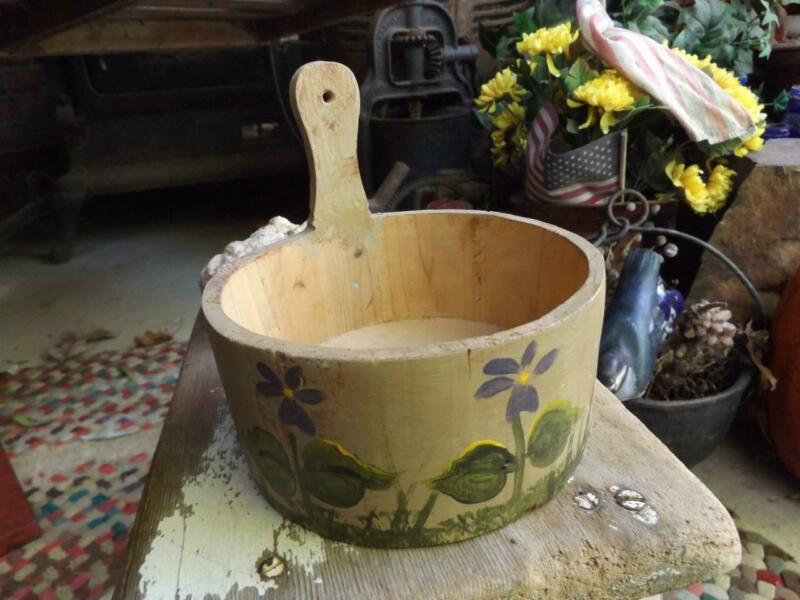 Title (ebay affiliate link): Primitive Vintage Wood Folk Art Painted Salt Box Purple Flowers Signed Chris Rob