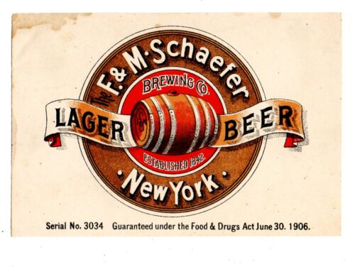 Title (ebay affiliate link): 1900s F & M SCHAEFER BREWING CO, NEW YORK LAGER BEER PRE-PROHIBITION LABEL