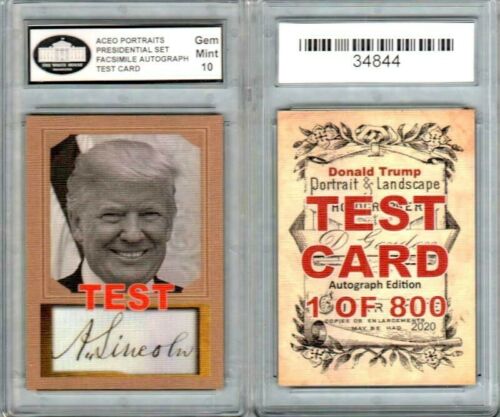 Title (ebay affiliate link): DONALD TRUMP FACS Abe Lincoln AUTO Presidential Portrait TEST Card GRADED 10 GEM