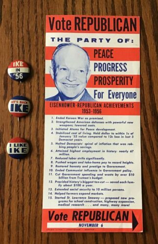 Title (ebay affiliate link): Dwight Eisenhower Campaign Brochure and 3 Campaign Buttons, 1956