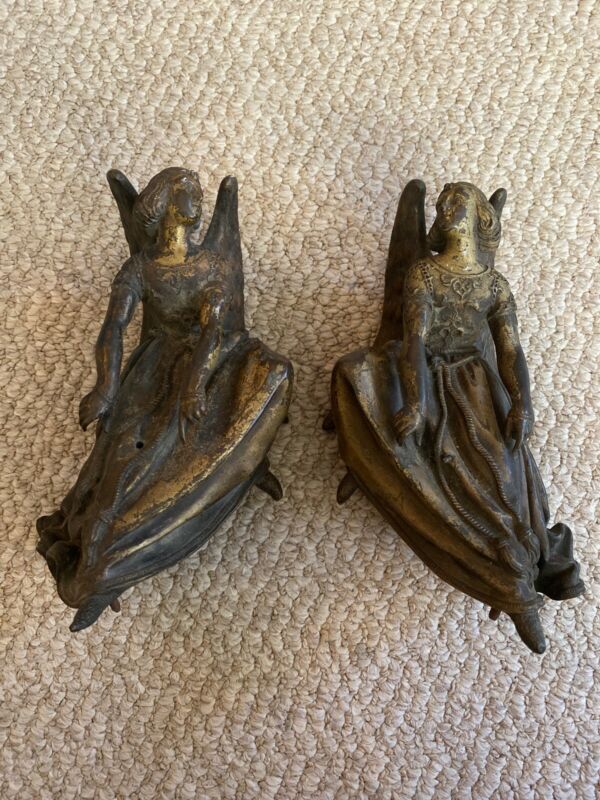 Matching Set Of Two Antique Brass Or Bronze Angel Clock Or Furniture Garnitures