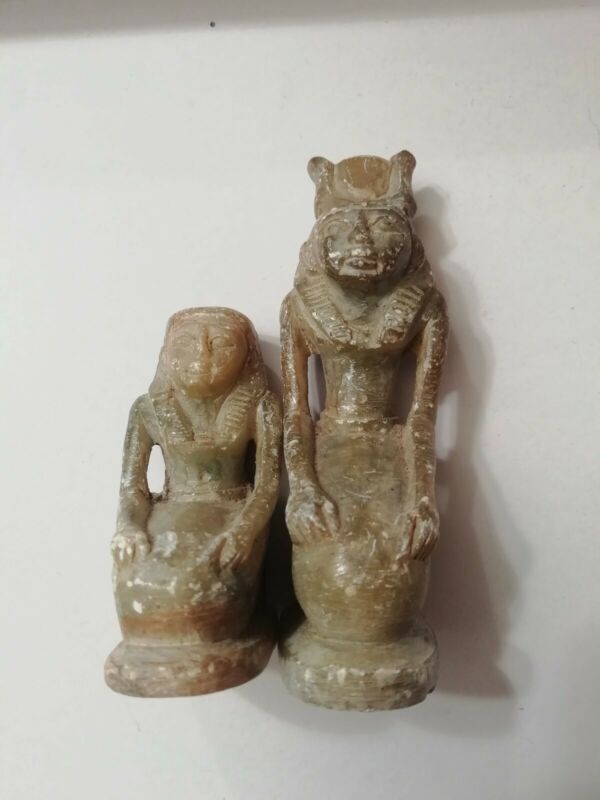 Title (ebay affiliate link): Pair Of Ancient Egyptian Carved Statues seated with hieroglyphs