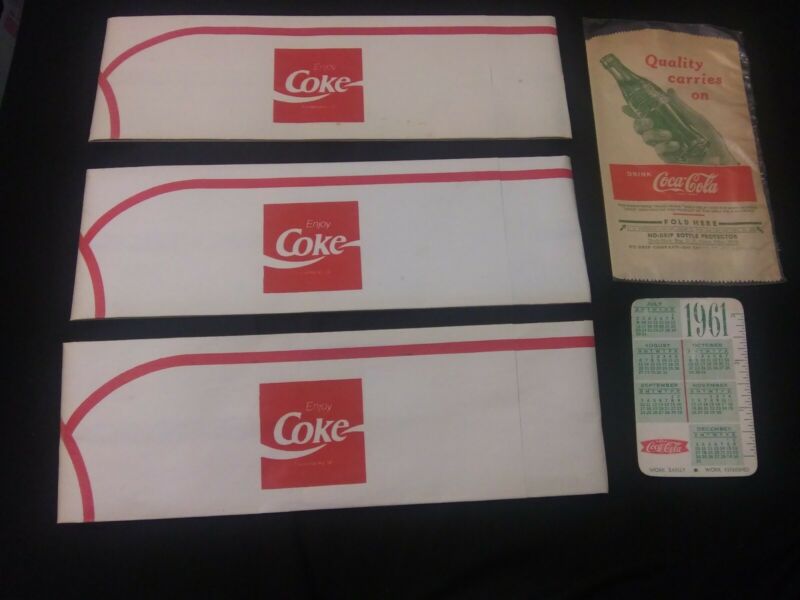 Title (ebay affiliate link): Vintage Coca Cola Lot Soda Jerk Hats SEALED Bottle Protector & Calendar