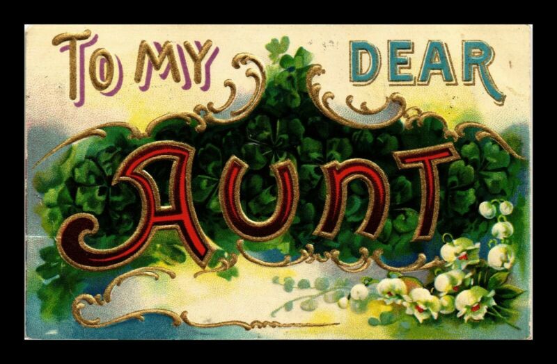 DR JIM STAMPS US TO MY DEAR AUNT SHAMROCKS FLOWERS EMBOSSED POSTCARD