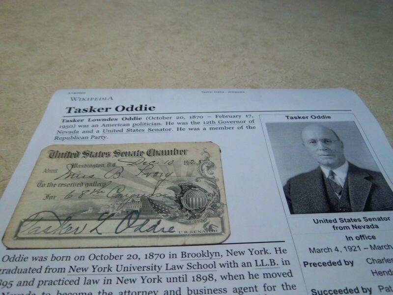 Title (ebay affiliate link): United States Senate Chamber Pass From Tasker Oddie Senator 68th Congress 1923