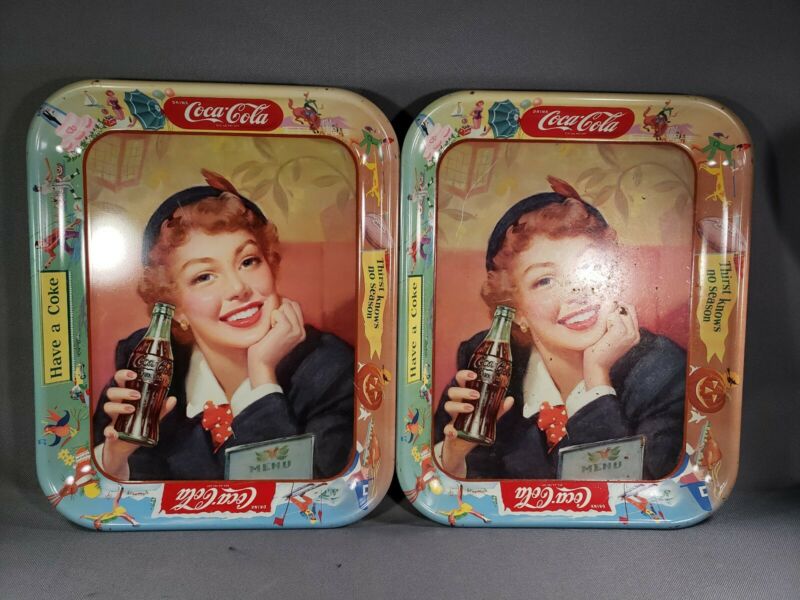 Title (ebay affiliate link): LOT OF 1950''S COCA COLA SERVING TRAY GIRL IN GREEN THIRST KNOW NO SEASON VINTAGE