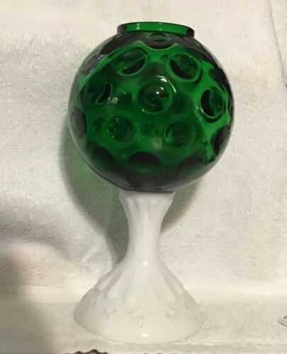 Title (ebay affiliate link): Fenton Emerald Green Footed Ivy Ball Vase Lamp Coin Dot Milk Glass Base