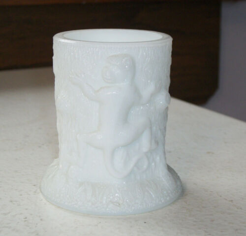 EAPG Milk Glass Matchholder Match Toothpick Holder Monkeys Climbing a Tree Trunk