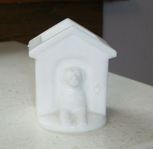 EAPG Whimsy Milk Glass Matchholer Match Holder Toothpick Holder Dog in Dog House