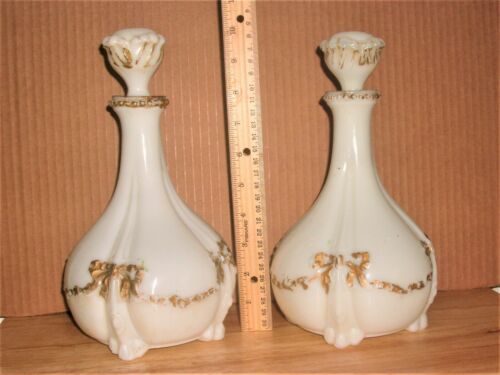 Antique Milk Glass Barber Bottles Bow and Drape Pattern Embossed with Stopper