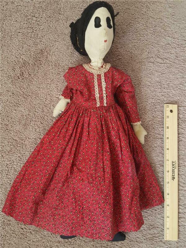 Title (ebay affiliate link): Antique Creepy Doll Red Dress Stuffed Plush Toy Haunted House Halloween Woman 20