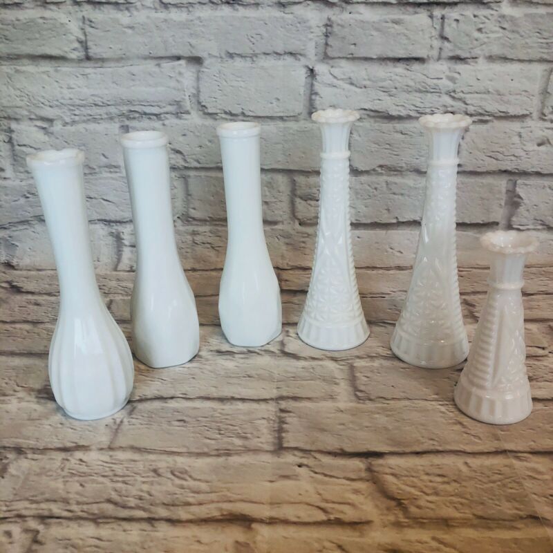 Title (ebay affiliate link): Lot of 6 Vintage White Milk Glass Vases Wedding Events L60