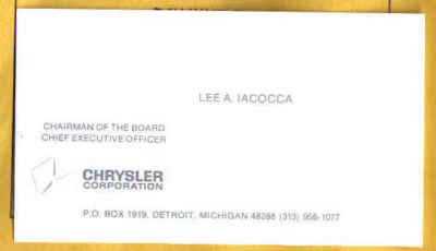 LEE A. IACOCCA VINTAGE CHRYSLER Original Business Card