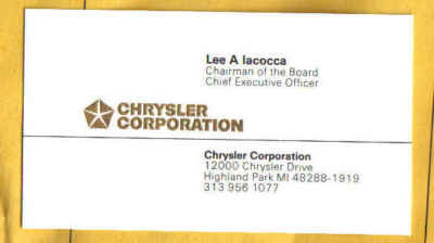 LEE A. IACOCCA VINTAGE CHRYSLER CHIEF Business Card