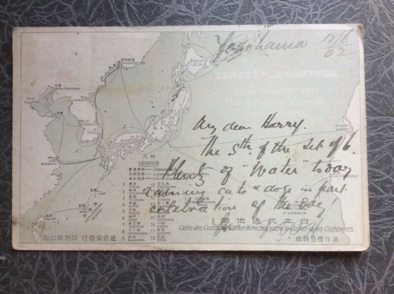 Thin Postcard Map JAPAN CHINA VLADIVOSTOK SHANGHAI CHEFOO Tokyo Etc 1902