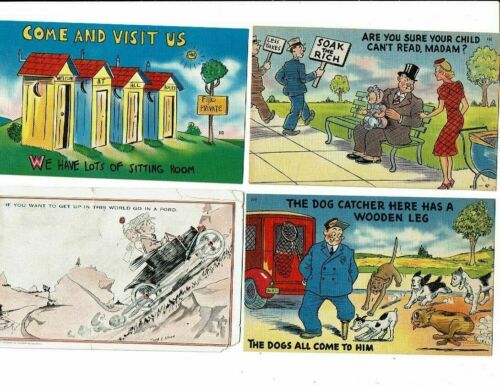 4 Card Comic Lot, Artist Shinn, Ford, Outhouses, Wooden Leg, Baby Read?