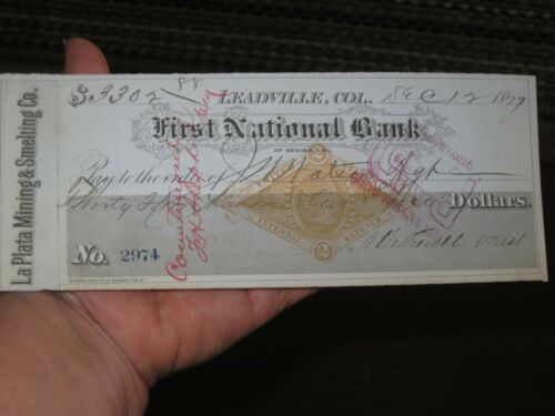 Title (ebay affiliate link): 1879 La Plata Mining & Smelting Co.- Leadville Colorado Cancled Check
