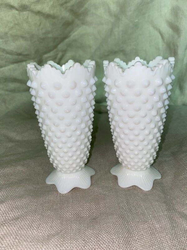 Title (ebay affiliate link): (2) Vintage Fenton Hobnail Milk Glass Petal Footed Base Flower Vase 5"