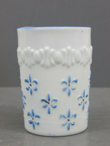 HTF ANTIQUE PAINTED MILK GLASS STIPPLED FLEUR-DE-LIS TUMBLER CIRCA 1900 UNKNOWN
