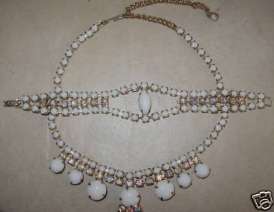 vintage RHINESTONE milk glass NECKLACE BRACELET parure