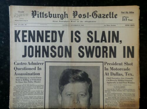 Title (ebay affiliate link): VINTAGE 1963 NOVEMBER 23 NEWSPAPER PRESIDENT KENNEDY SLAIN JOHNSON SWORN IN