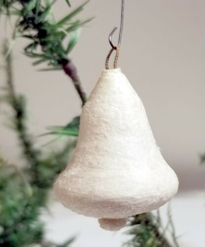 Title (ebay affiliate link): Miniature White Cotton Bell. 1890s Spun Cotton German Ornament. Germany.