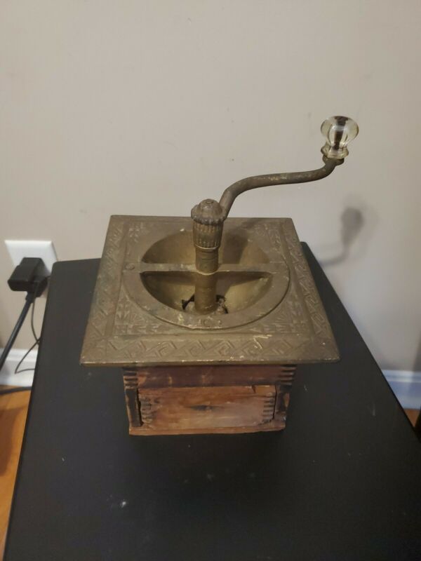 Title (ebay affiliate link): Primitive Coffee Mill / Grinder -Cast Iron Top & Dovetailed Box