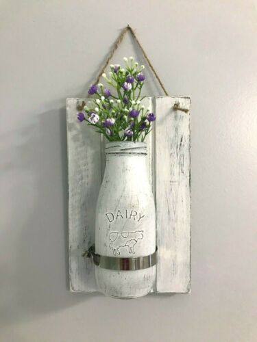 Title (ebay affiliate link): Primitive Milk Bottle Sconce - Rustic Farmhouse Decor