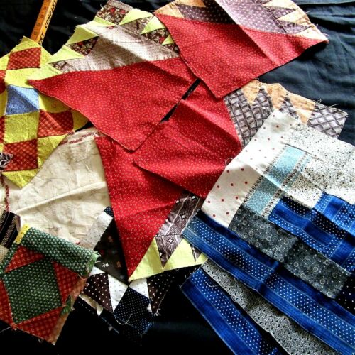 Antique Quilt block LOT RED Calico CADET Blue LOG CABIN GREEN 4 SQUARE MADDER