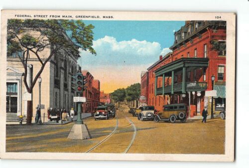 Greenfield Massachusetts MA Postcard 1915-1930 Federal Street from Main