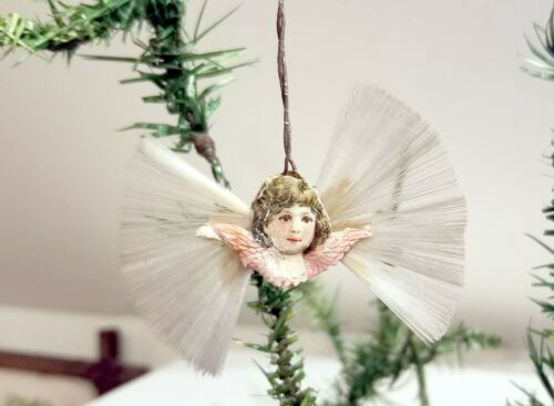 Title (ebay affiliate link): Miniature Angel Bust, with Spun Glass Wings. Early 1900s Paper & Glass Ornament