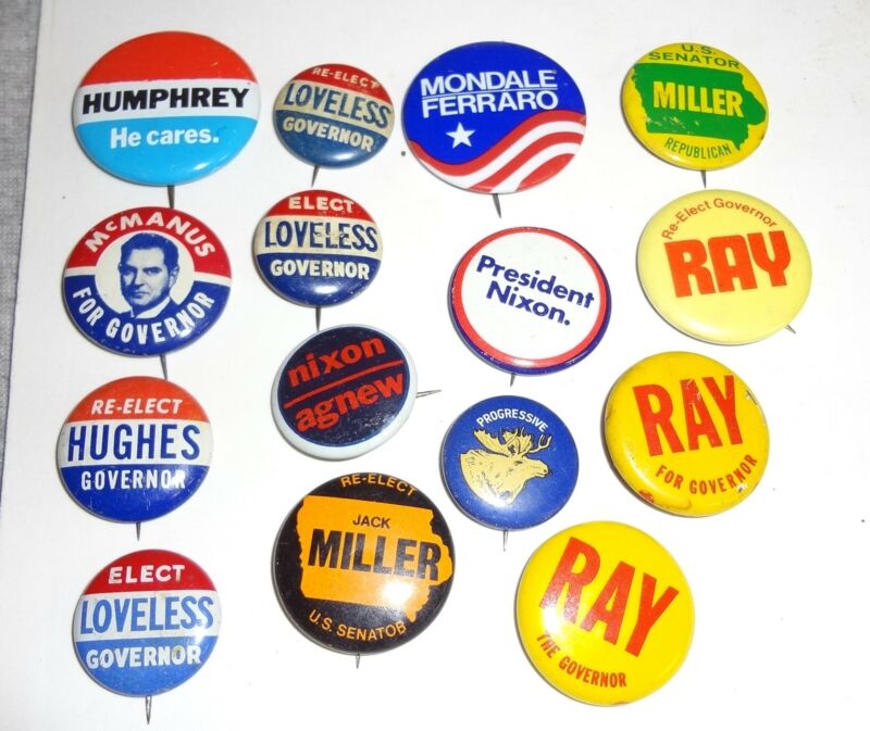 Title (ebay affiliate link): LOT OF 24 POLITICAL PINS MOSTLY IOWA-DEMOCRATS & REPUBLICANS