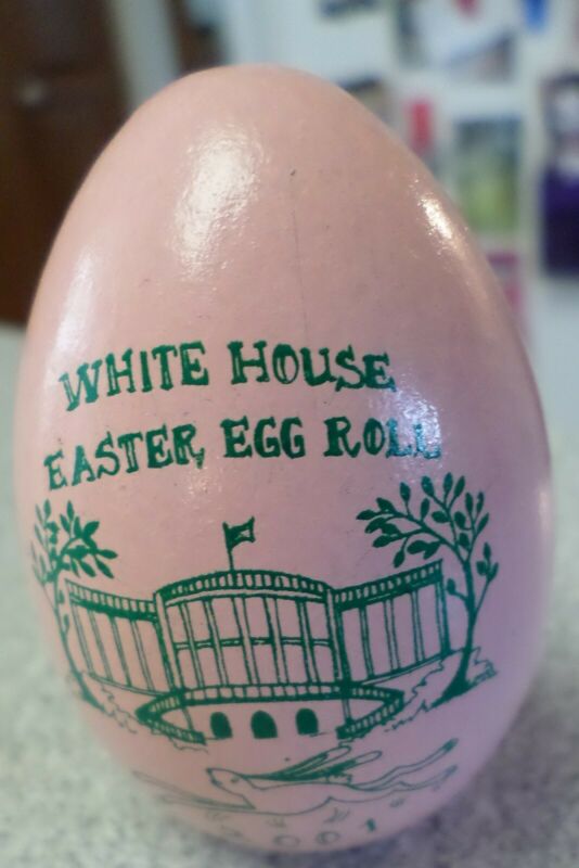 Title (ebay affiliate link): 2001 PINK Wooden Egg White House Easter Egg Roll President George & Laura Bush