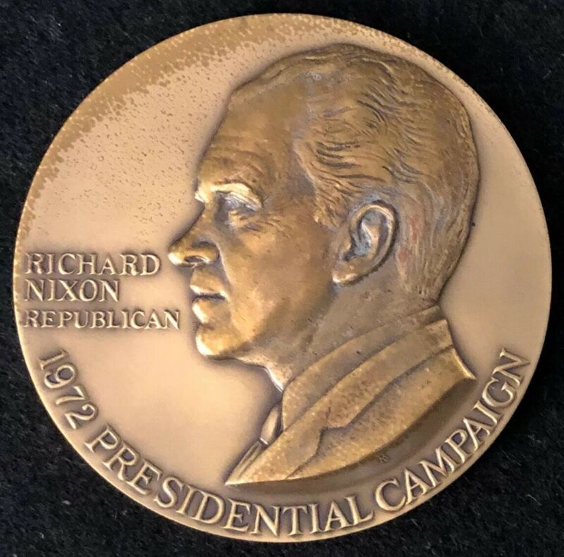 Title (ebay affiliate link): 1972 Presidential Campaign - Nixon vs McGovern; 2.5 Inch Diam. Bronze Medallion