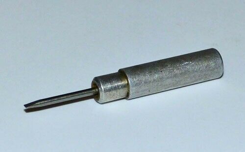 Title (ebay affiliate link): Vintage Miniature Aluminum Handle Steel Shaft Flat Head 1/16" Screwdriver