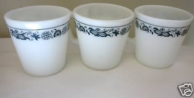 Pyrex Old Town Blue Onion Mugs (3) D Handle Milk Glass