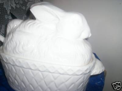 ""3 PC""WHITE MILK GLASS""BUNNY COVERED SERV/ DISH""