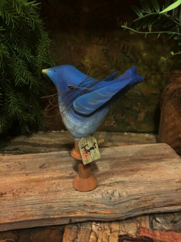 *Primitive 6.5x5in BLUE BIRD BOBBIN Fabric HANDMADE Country old rusty doll*