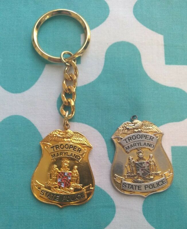 Title (ebay affiliate link): 2 MARYLAND State Trooper Police BADGE Key Ring Chain holder Vintage