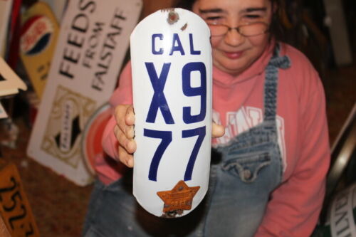 Title (ebay affiliate link): Rare Antique 1919 California Motorcycle Curved License Plate Porcelain Sign