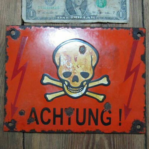 Title (ebay affiliate link): 100% ORIGINAL - Porcelain Sign 1939-1945, WWII, Danger, Skull & Crossbones No 64
