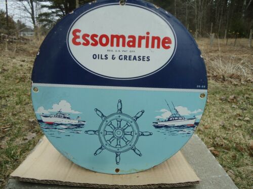 Title (ebay affiliate link): OLD VINTAGE 1968 ESSO MARINE OILS & GREASES PORCELAIN GAS PUMP SIGN