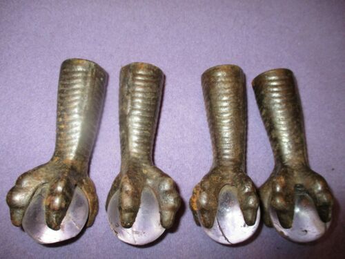 SET OF 4 VICTORIAN GLASS BALL & CLAW FEET FOR STAND OR PIANO STOOL