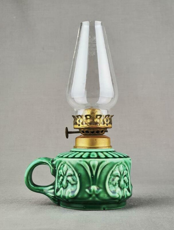 Green Art Nouveau Kerosene Paraffin Oil Finger Chamber Lamp Gem Arctic Burner