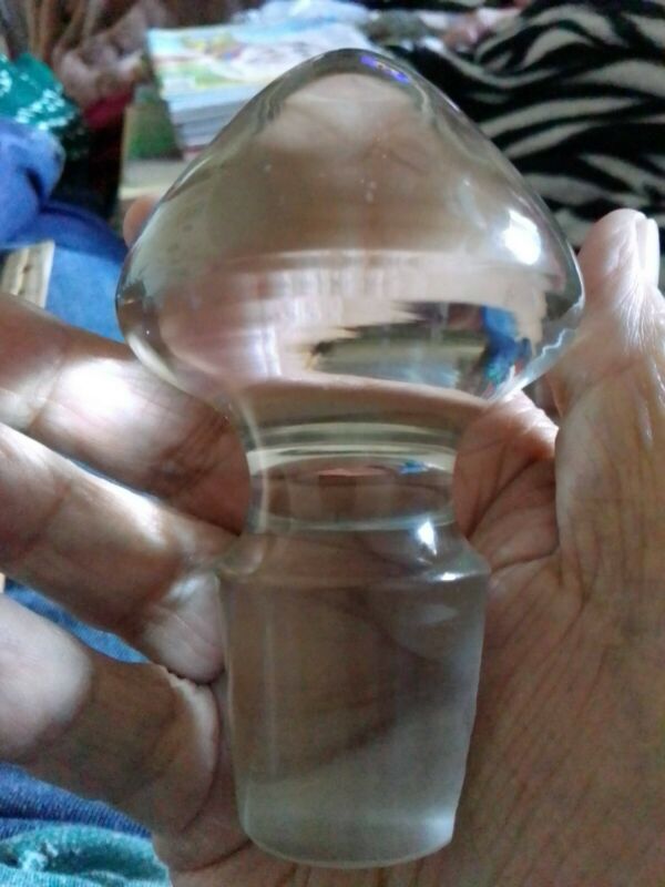 Title (ebay affiliate link): Antique Clear Glass Tab Top Decanter Bottle Stopper 4" TALL VERY HEAVY NEW