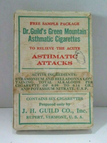 Title (ebay affiliate link): Antique Old Box Dr Guild''s Green Mountain Asthmatic Cigarettes Advertising