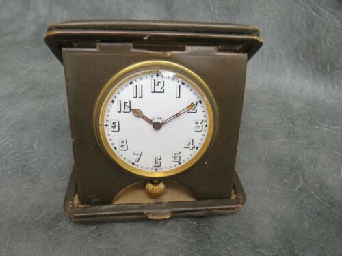 Title (ebay affiliate link): A GOOD WORKING ANTIQUE 8 DAY TRAVEL CLOCK IN LEATHERETTE CASE c1920