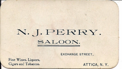 Attica , NY, N. J. Perry Saloon Card, 1915 Era