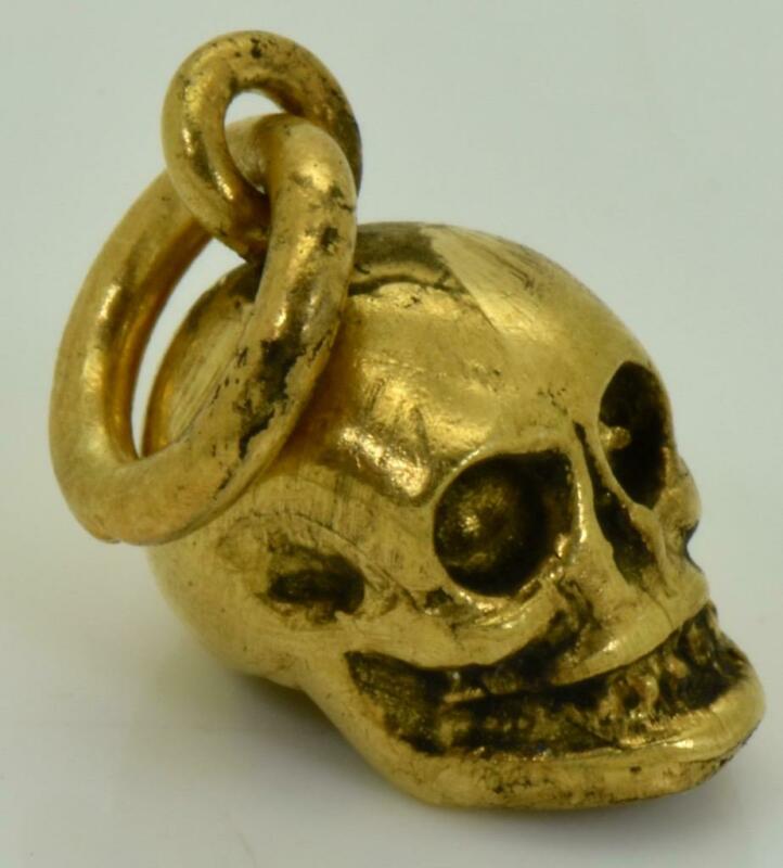 Antique Victorian gold plated Sterling Silver Skull charm pendant fob.8mm