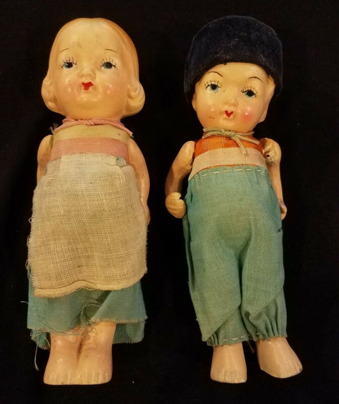 Title (ebay affiliate link): VTG 2 ANTIQUE BISQUE DOLLS BOY GIRL JAPAN ON BOTH 6" HIGH ARMS MOVE